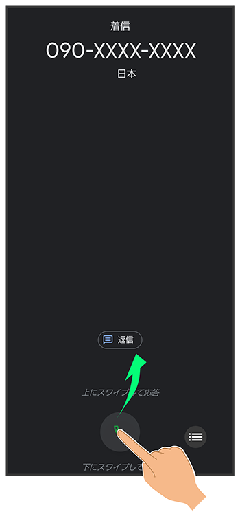着信中に送信するメッセージをタップ- 画面ロックを解除しているときは、送信するメッセージをタップします。