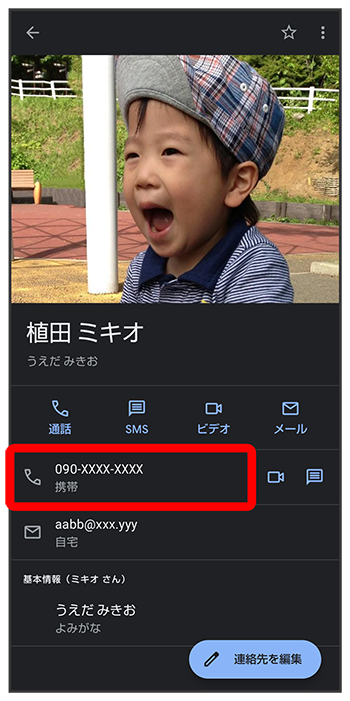連絡先詳細画面が表示されます。