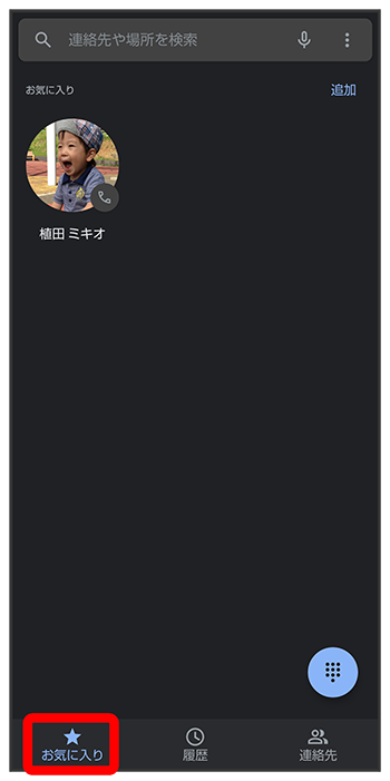 お気に入り一覧画面で追加したい連絡先をタップお気に入りを削除する