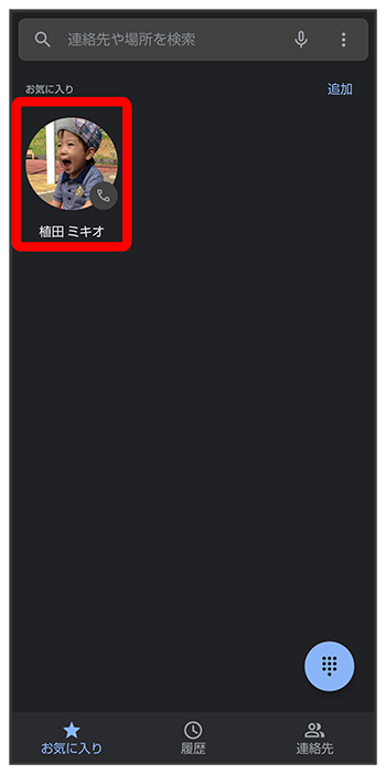 お気に入り一覧画面で削除したいお気に入りをロングタッチお気に入りの連絡先詳細画面を表示する