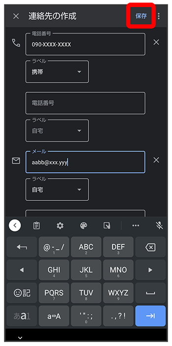)が切り替わります。 - 新しい連絡先の作成画面でラベル名を入力と操作すると、新しいラベルを追加できます。