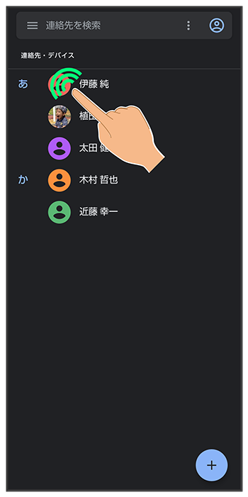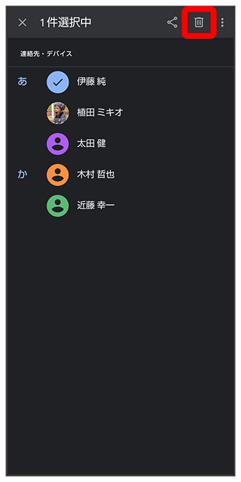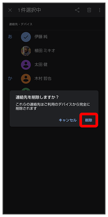 対象の連絡先をタップしても、対象の連絡先を選択できます。複数の連絡先を削除する場合は、続けてほかの対象の連絡先をタップします。