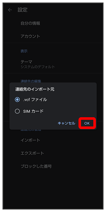 本機やほかの携帯電話でSDカードに保存(バックアップ)した電話帳データを読み込み(インポート)できます。