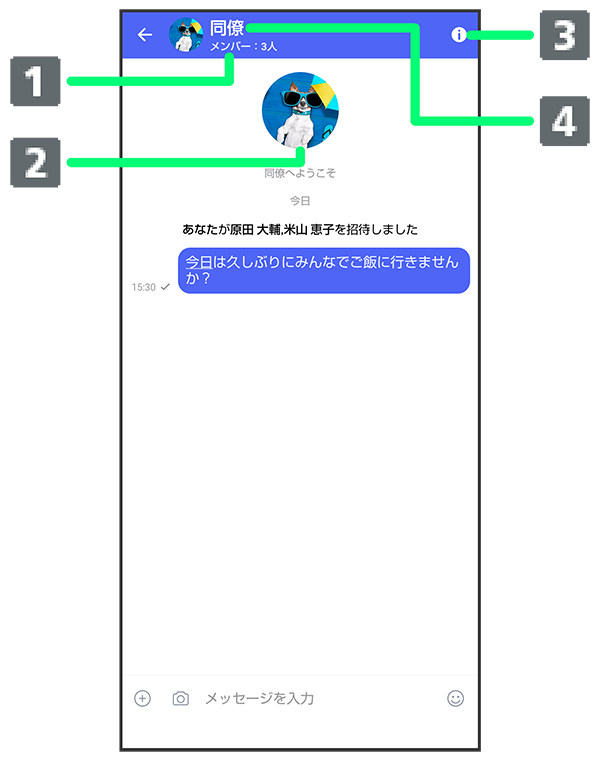 グループメッセージ画面で- 確認画面が表示されたときは、画面の指示に従って操作してください。