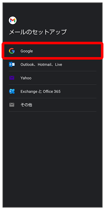 ここでは、Google アカウントを追加する方法を例に説明します。
