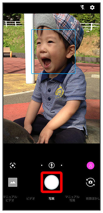 - 写真撮影画面の操作について詳しくは、「写真撮影画面(アウトカメラ)の見かた」、「写真撮影画面(インカメラ)の見かた」を参照してください。