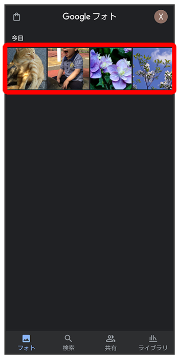- フォト画面でと操作すると、アーカイブした写真/動画を確認できます。