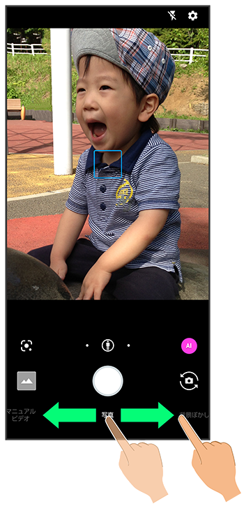 画面下部の撮影モードを左右にドラッグして撮影モードを選択