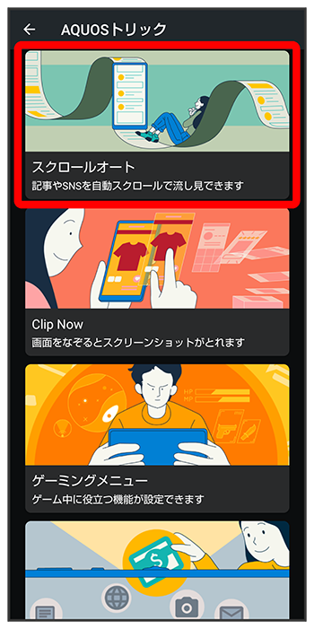 スクロールオート画面で