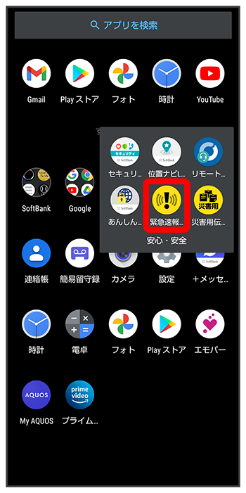 ホーム画面を上にフリック緊急速報メールを利用するかどうかを設定する