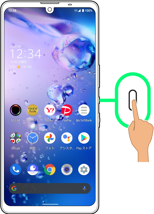 (アシスタント)をタップするか、画面右下または左下から斜め上にフリックしても、
