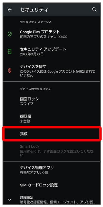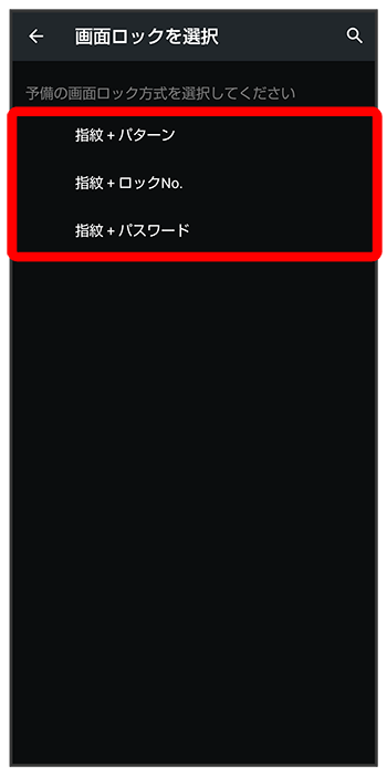 - 指紋認証ができないときの予備の画面ロック解除方法になります。