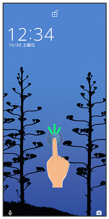 - が有効のときは、画面消灯(画面ロック)中に画面をタップして、指紋センサーを表示できます。詳しくは、「指紋センサーとPayトリガーの設定」を参照してください。