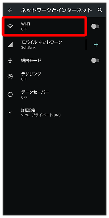 Wi-Fi画面で解除したいアクセスポイントをタップ- をタップすると、接続を解除したアクセスポイントに接続できます。