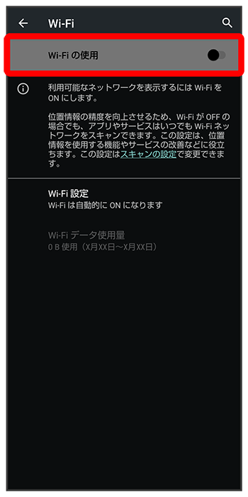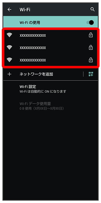 Wi-Fi画面でプロバイダーを選択Wi-Fiを使用したデータ使用量を確認する