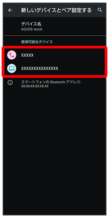 「使用可能なデバイス」欄に近くにあるBluetooth®機器が表示されます。