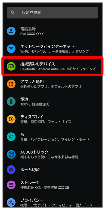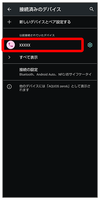 接続済みのデバイス画面で、ペア設定を解除する機器のこちらで検索できます