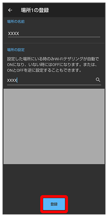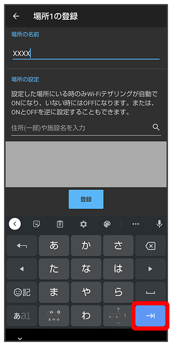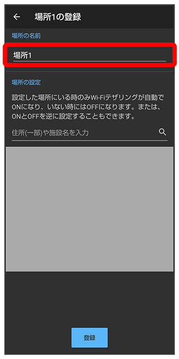 テザリングオート画面で場所の名前欄をタップ場所の名前を入力