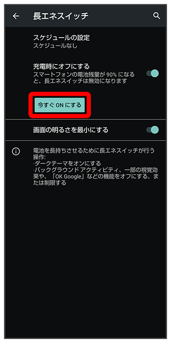 長エネスイッチ画面でバーをドラッグして電池残量を調節- 設定を解除するときは、をタップします。