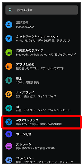 AQUOSトリック画面が表示されます。