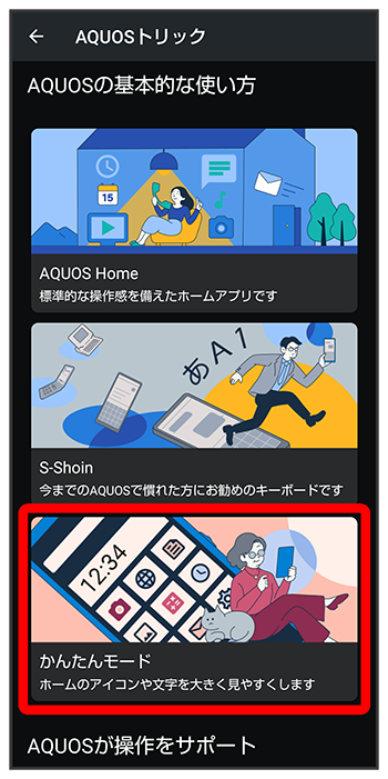 かんたんモード画面でホーム画面や文字の大きさなどを個別に設定する