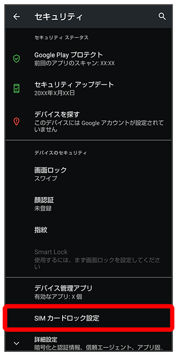 PINコードを有効にすることで、SIMカードを本機に取り付けた状態/eSIMが有効な状態で電源を入れたとき、PINコード(SIMカード用の暗証番号)を入力しないと本機が使用できなくなります。第三者の無断使用を防ぐために有効です。