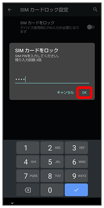 PINコードを操作するときや、SIMカードロック設定時に電源を入れたときは、PINコードの入力が必要になります。