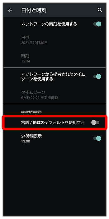 ユーザーの言語/地域の標準に従って24時間表示/12時間表示が自動設定されます。