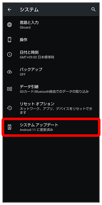 - システムアップデートが進むと最後にが表示されます。タップして、システムアップデートを完了させてください。