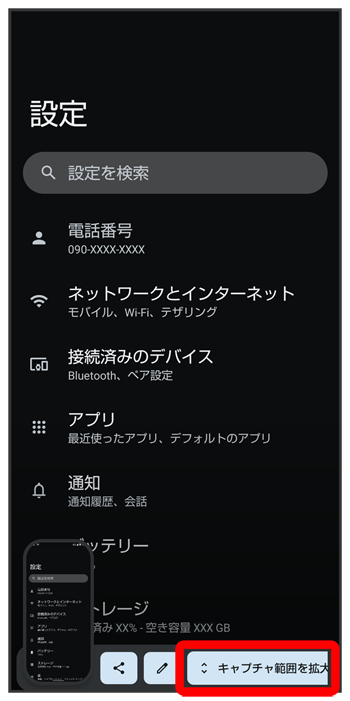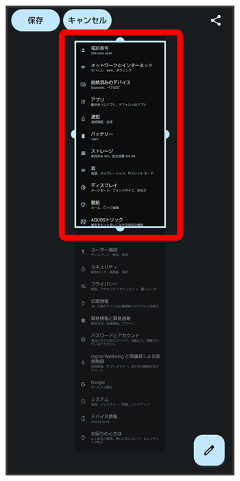 をタップすると指定した範囲のスクリーンショットが別のファイルとして保存され、共有や編集ができます。