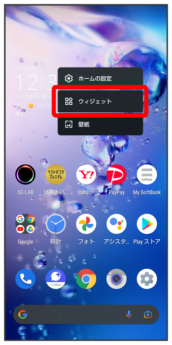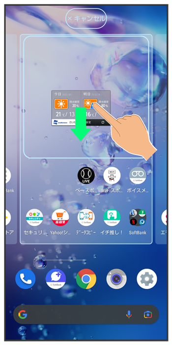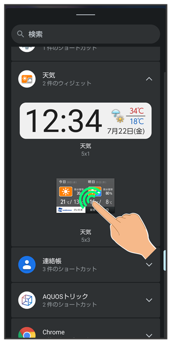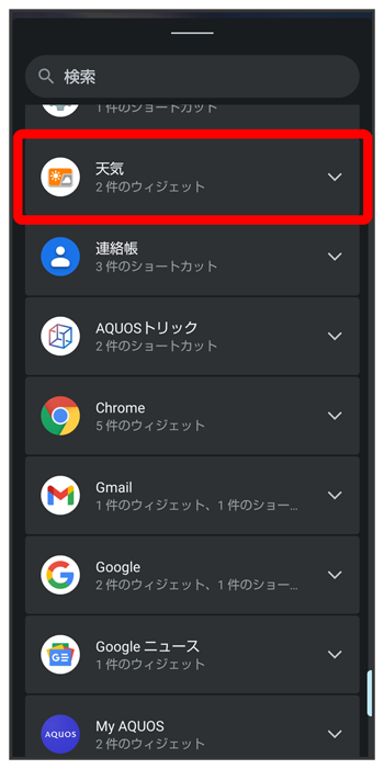 - 検索バーの入力欄をタップして検索文字列を入力すると、アプリやウィジェットを検索できます。