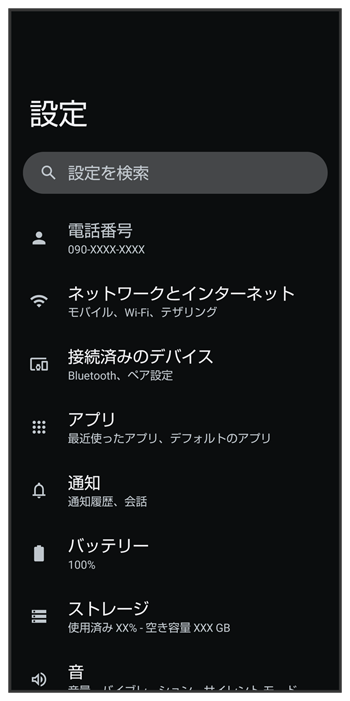 | アプリ | 「アプリと通知」の一部の項目が「アプリ」として追加されます。 が追加され、数ヵ月使用していないアプリを整理して空き容量を増やしたり、権限の削除が行われます。 の項目が一部変更されます。が削除されます。設定する場合は、設定するアプリを選択「バッテリー使用量の管理」から設定してください。 |