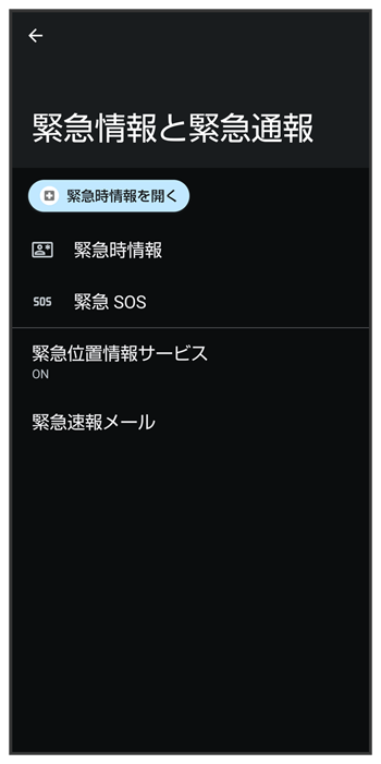 | 緊急位置情報サービス | 緊急時に現在地を送信するかどうかを設定します。 |