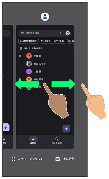 アプリの履歴を左右にドラッグして、次に操作したいアプリの履歴をタップ