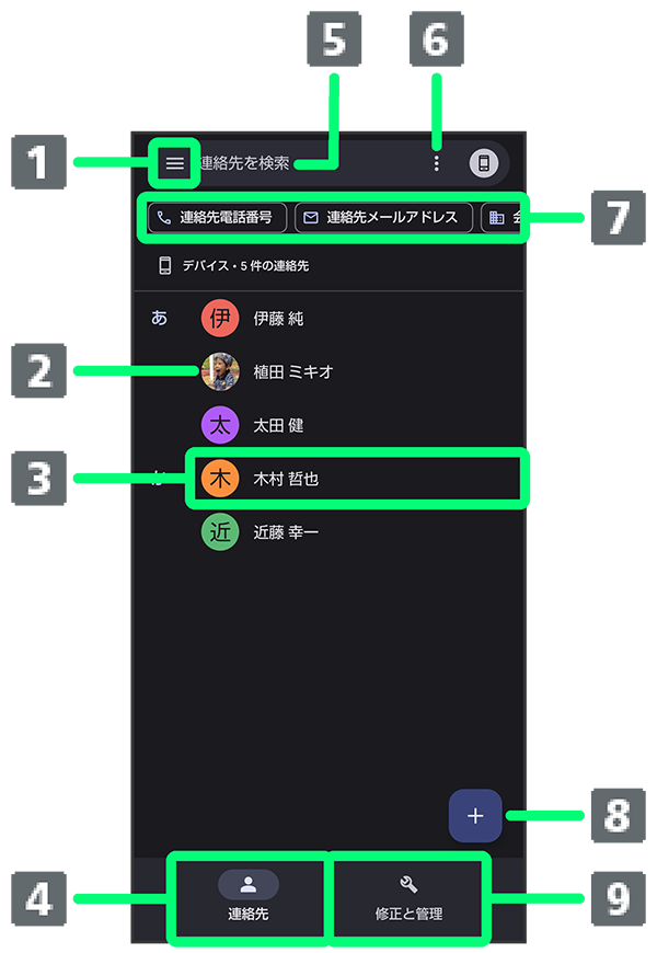 - 連絡先を電話番号やメールアドレスなどでフィルタリング