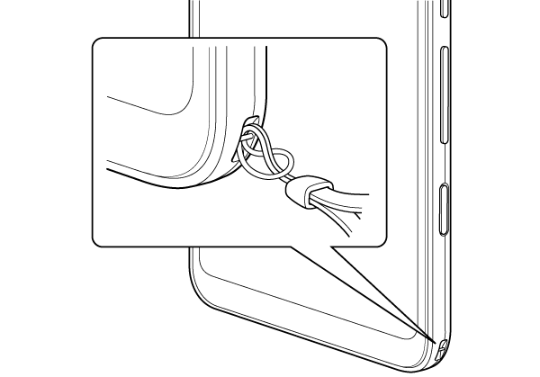 ストラップホールに、図のようにストラップを通して取り付けてください。