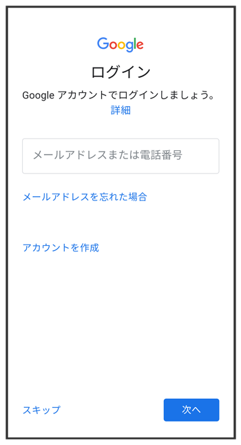 - Google アカウントを設定しないときは、をタップします。