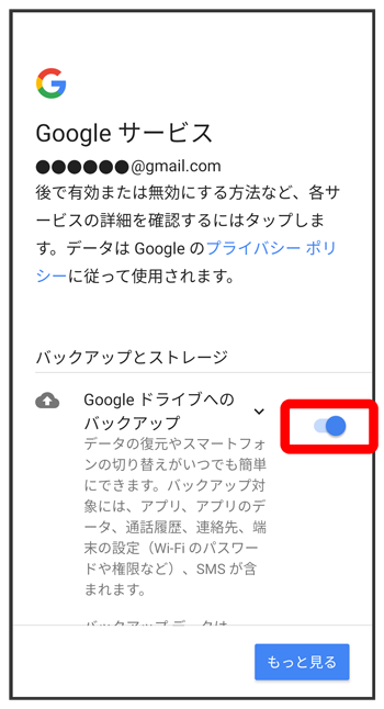 Googleサービス設定画面で利用するサービスを設定