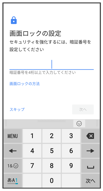 画面の指示に従って、画面ロックを設定