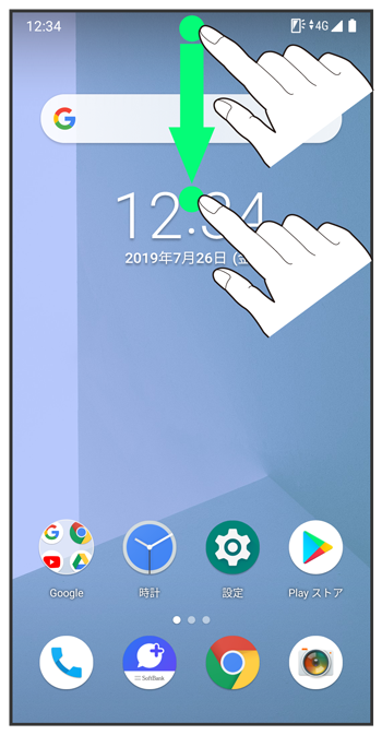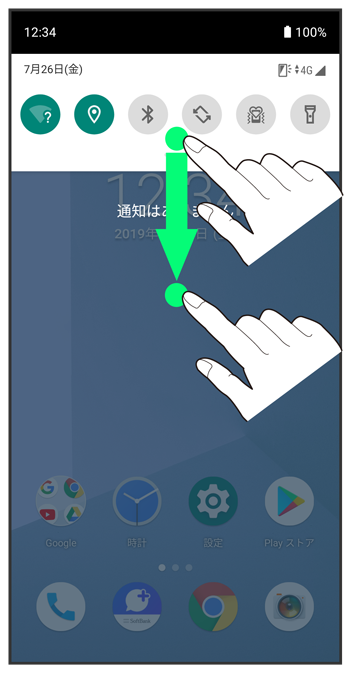 - ステータスバーを2本指で下にドラッグしても、クイック設定パネルを表示できます。