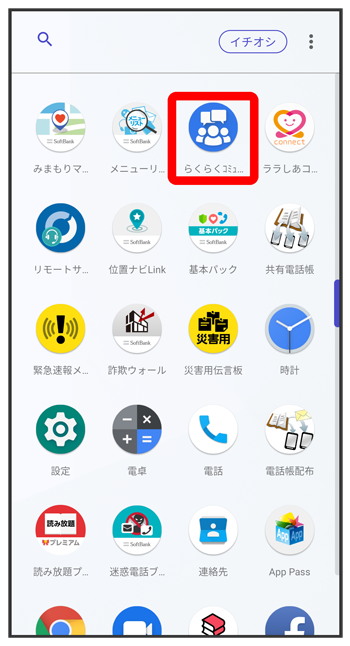 (らくらくコミュニティ)をはじめて起動したときの操作を例に説明します。