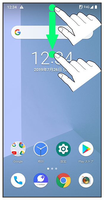 ステータスバーを下にドラッグ