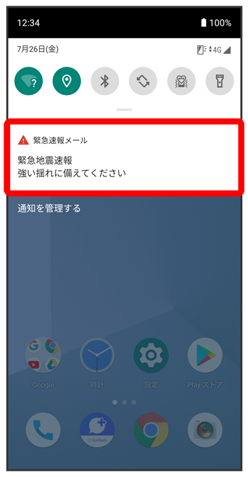 緊急速報メールを受信すると
