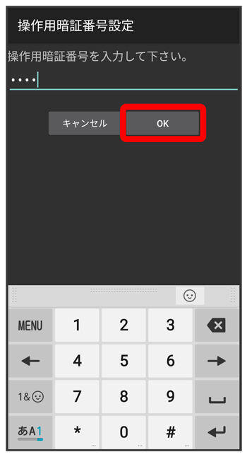 操作用暗証番号を再度入力操作用暗証番号が設定されます。