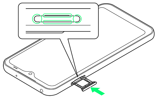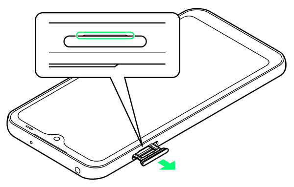 本機のディスプレイ側を上に向け、ミゾに指先をかけてスロットキャップを開け、スロットキャップを矢印の方向にまっすぐ水平に引き出す