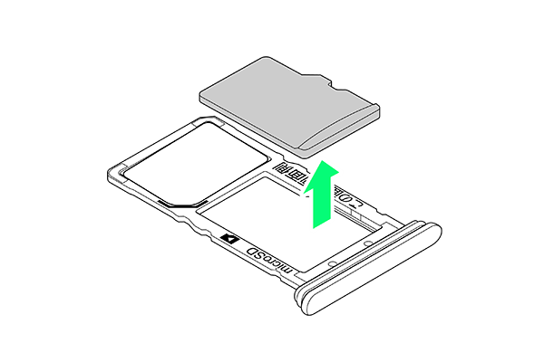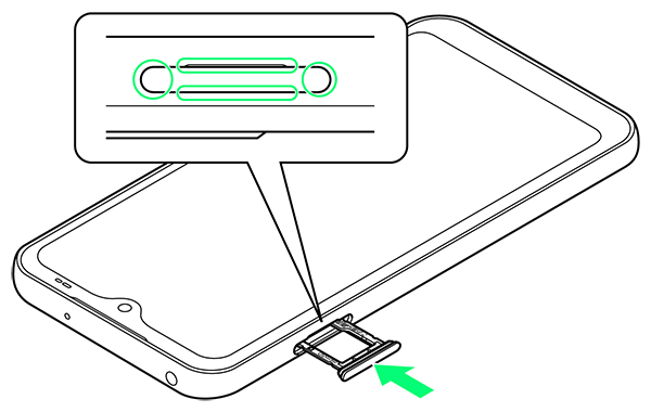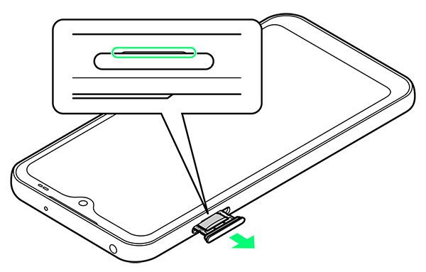 本機のディスプレイ側を上に向け、ミゾに指先をかけてスロットキャップを開け、スロットキャップを矢印の方向にまっすぐ水平に引き出す