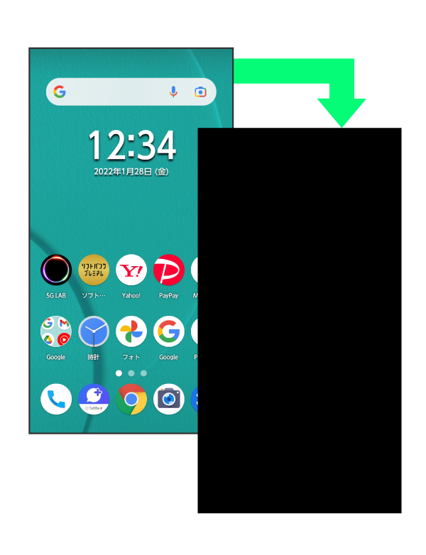 - 画面点灯時に電源キーを押すと、手動で画面ロック状態にすることができます。