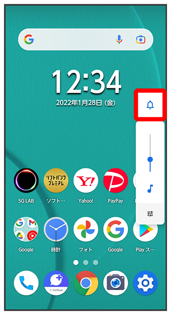 - 音量大/音量小キーを押して音量バーを表示させ、