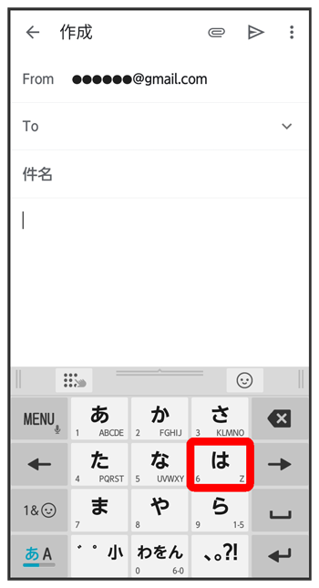 「は」に割り当てられている文字のキーボードに切り替わります。