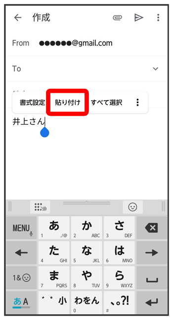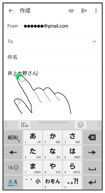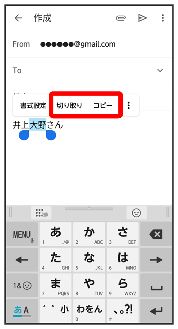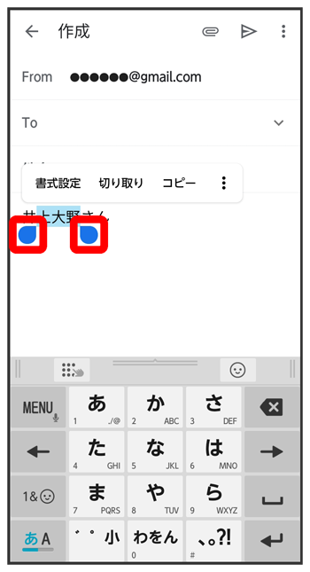 文字入力画面やウェブサイトなどで、入力済みの文字やコピーしたいテキストをロングタッチ